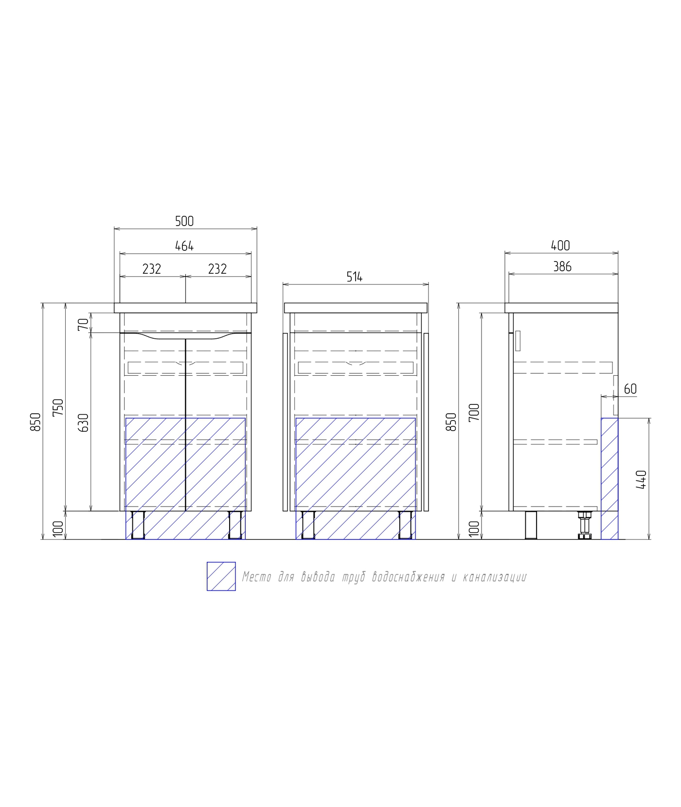 Тумба под раковину Vigo Grani 500-0-1 Como навесная