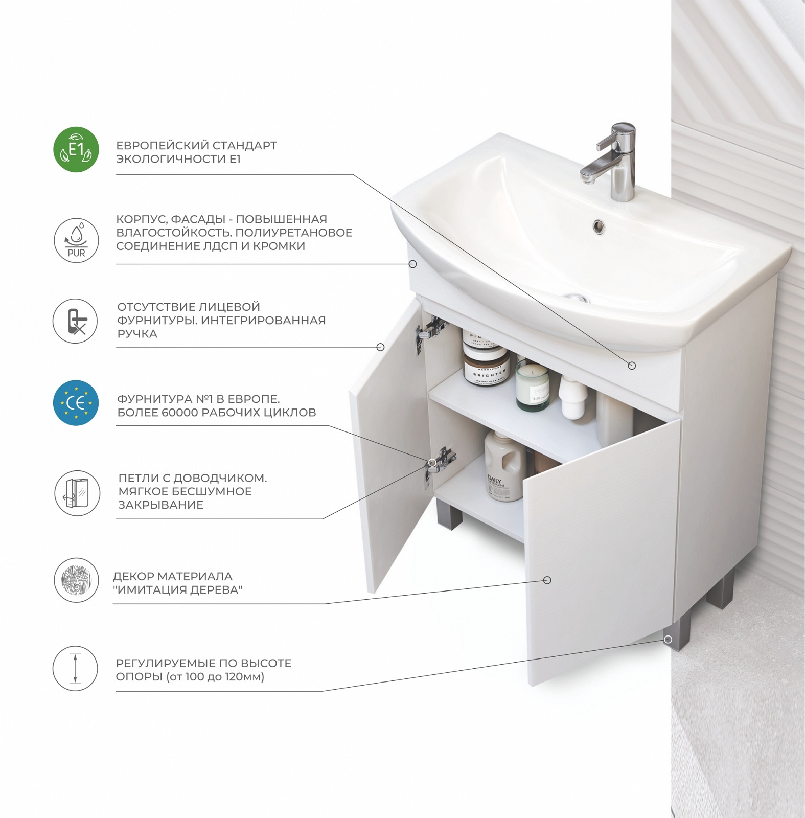 Тумба под раковину Vigo Wing 60-0-2 Балтика 60, напольная, белая
